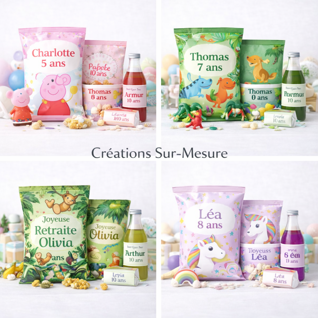 Chaque kit fête enfant personnalisé est conçu selon votre anniversaire thème enfant préféré. Des emballages personnalisés anniversaire à l'étiquette bouteille personnalisée anniversaire, chaque détail est pensé pour une décoration événement personnalisée harmonieuse. Pour un souvenir mémorable, optez pour notre coffret naissance Troyes, une création locale et pleine de tendresse.