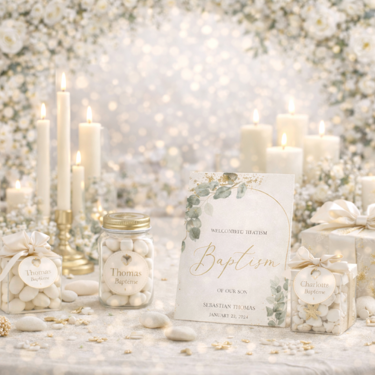 Que ce soit pour un baptême, une naissance, une communion ou une cérémonie symbolique, chaque détail est pensé pour créer une ambiance douce, élégante et harmonieuse.